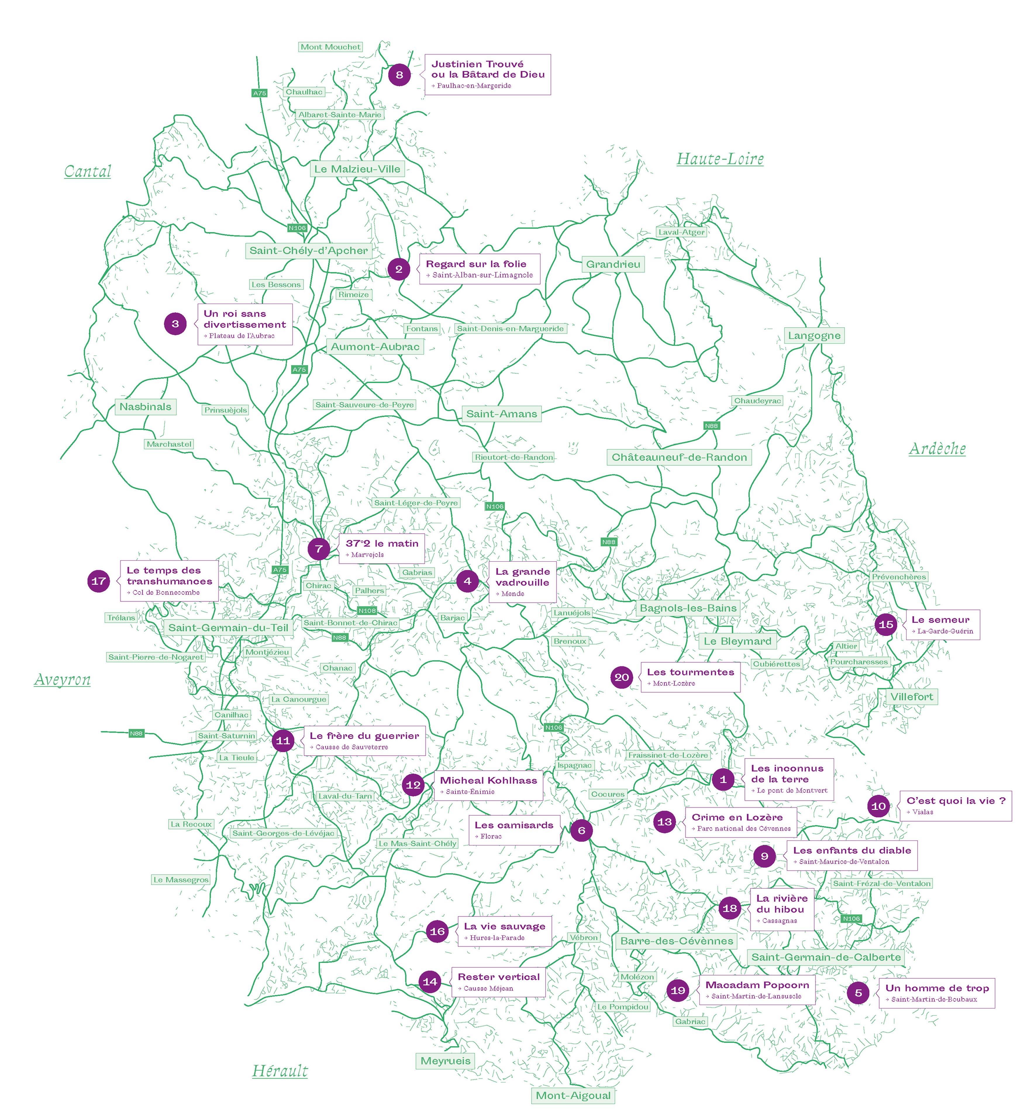 Cette carte de la Lozère réunissant près de 80 films s’inscrit dans cette dynamique globale. Ces films, tournés en partie ou intégralement dans le département, reflètent la diversité de la production : films historiques et contemporains, courts et longs métrages, documentaires et fictions. Nous avons le souhait de participer à une meilleure connaissance de ces images, rappelant combien ces communes, ce patrimoine bâti et ces paysages ont su nourrir l’inspiration des artistes.